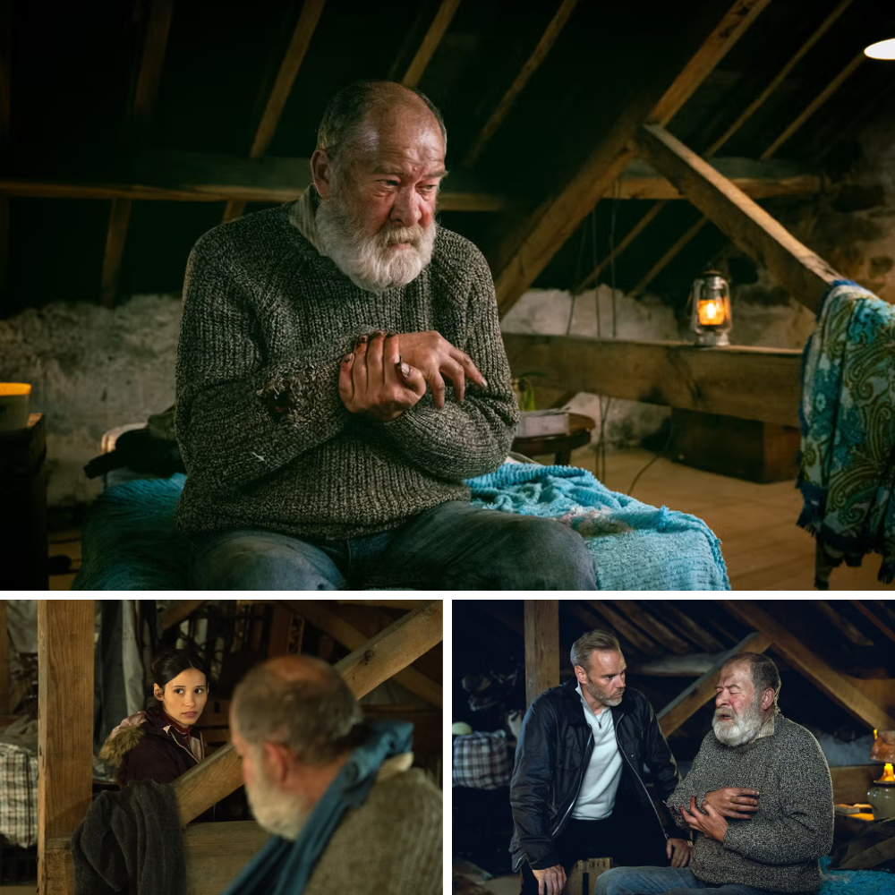 As Bear sang to Anya, a sweeping shot showed Paddy and Moira out in the field tending to some sheep, revealing that Paddy was just a stone’s throw away from where his dad was being kept prisoner.