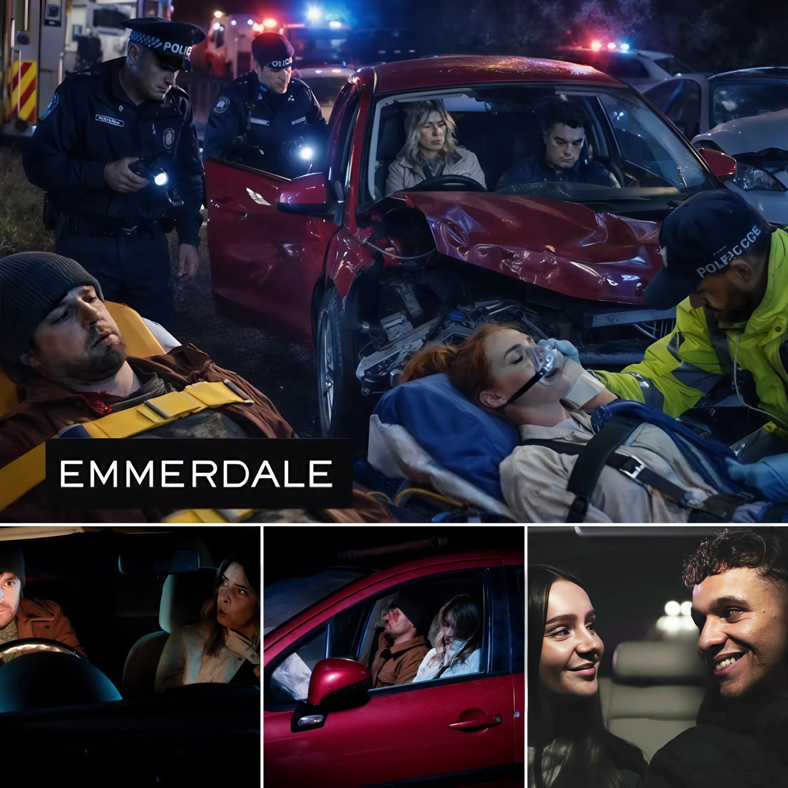 Jacob, still dressed in his wedding suit, is thrust into a nightmare no newlywed should ever face. As a junior doctor, he is forced to step into crisis mode, racing toward the wreckage to save the very people responsible for destroying his honeymoon. Charity is unconscious, bleeding, and barely responsive. Mackenzie is trapped behind the wheel, critically injured and fading fast.