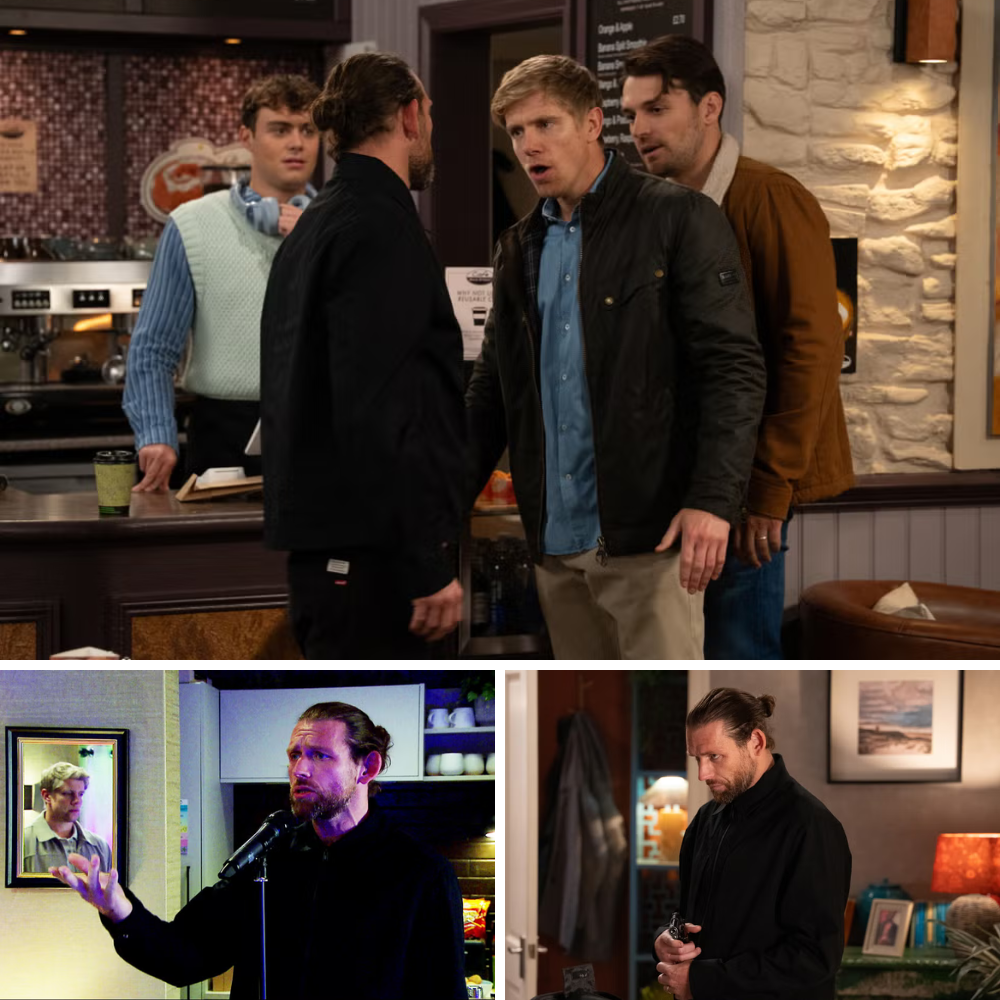 Emmerdale’s ruthless newcomer Kev Townsend is determined to keep Robert Sugden close by any means necessary next week – as he whips out a secret gun. Will spiralling Kev suss out that his beloved hubby has rekindled things with Aaron Dingle and go for revenge?