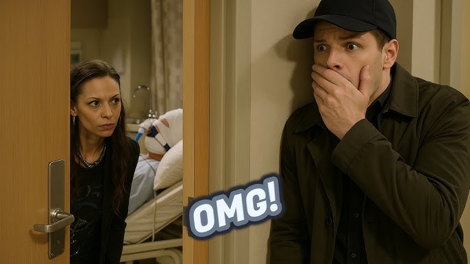 At that same moment, Sienna sneaks into the hospital disguised in scrubs. The camera follows her down the hallway as she carries a syringe hidden in her sleeve. She pauses outside Noah’s room, glancing through the glass window. Inside, Sharon sits asleep in a chair beside her son. Sienna’s hand trembles slightly as she opens the door — until a voice behind her stops her cold.