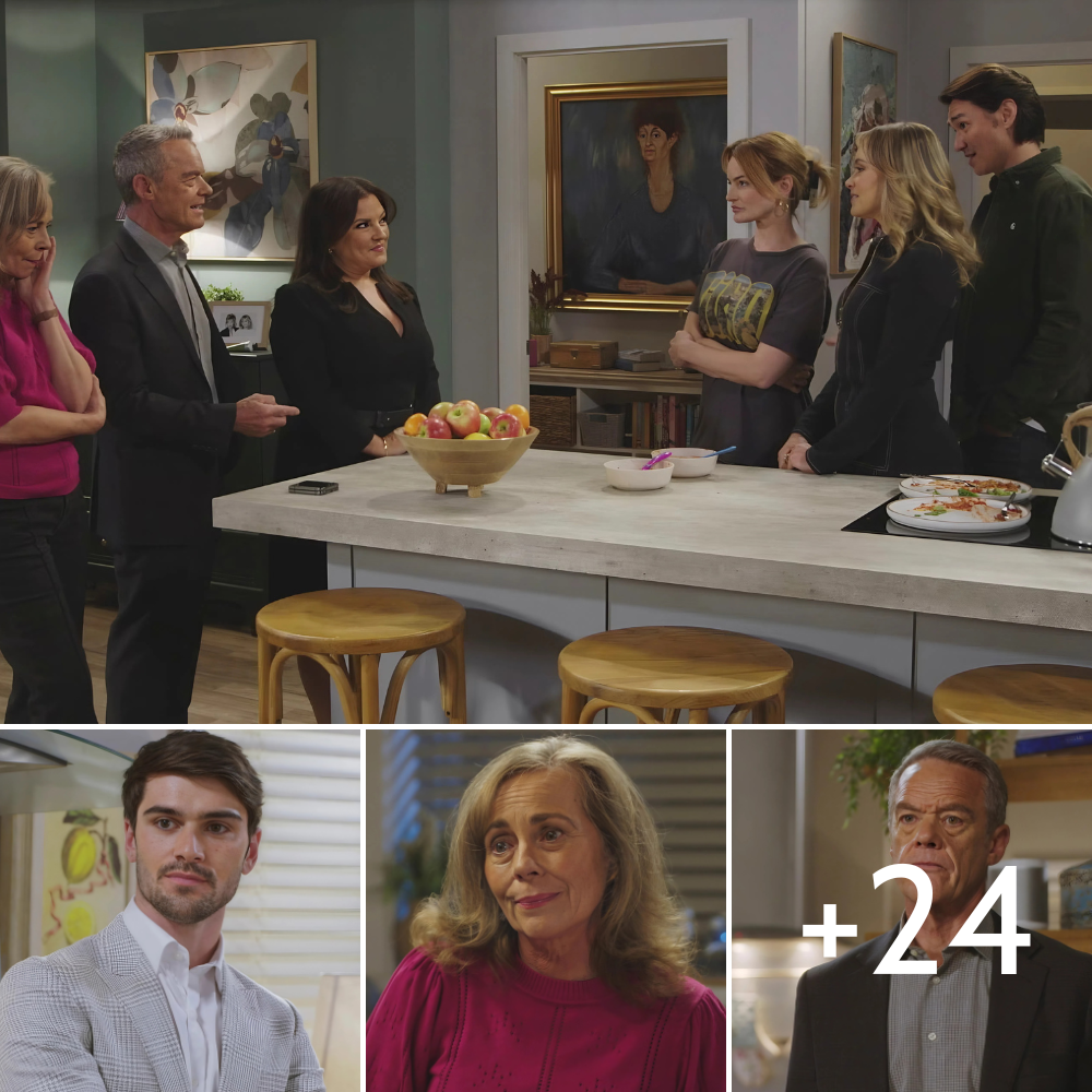karl kennedy, susan kennedy and colton keys check on wendy rodwell in neighbours