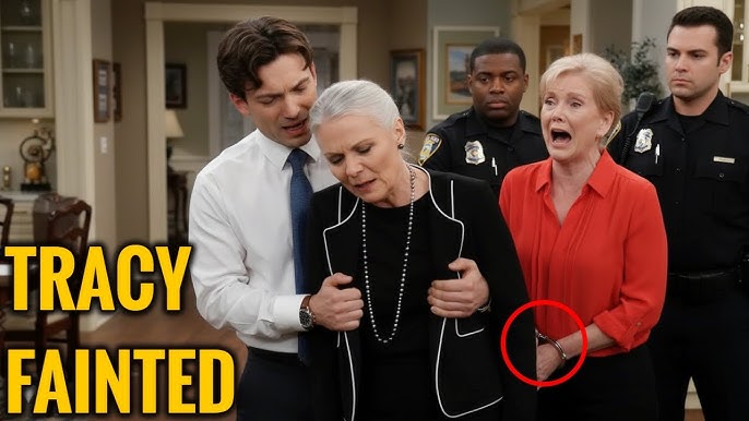 The next act of the drama unfolds quickly. Law enforcement arrives, responding to charges that have been filed due to Ronnie’s mismanagement and alleged fraud against Quartermaine Enterprises. Tracy’s decision is clear: despite familial bonds, the law must take its course. Ronnie’s eyes widen as he is led from the mansion, handcuffed and stunned. Yet, even in this moment of despair, he holds his head high, determined to face his fate with dignity.